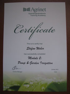Pretoria in 2000. He completed his NQF5 designer qualification as a SABI designer in 2015. Stefan was the owner of an irrigation business and shop from 2000 – 2010. He has