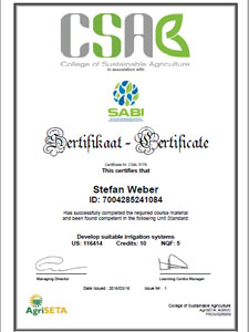 Pretoria in 2000. He completed his NQF5 designer qualification as a SABI designer in 2015. Stefan was the owner of an irrigation business and shop from 2000 – 2010. He has